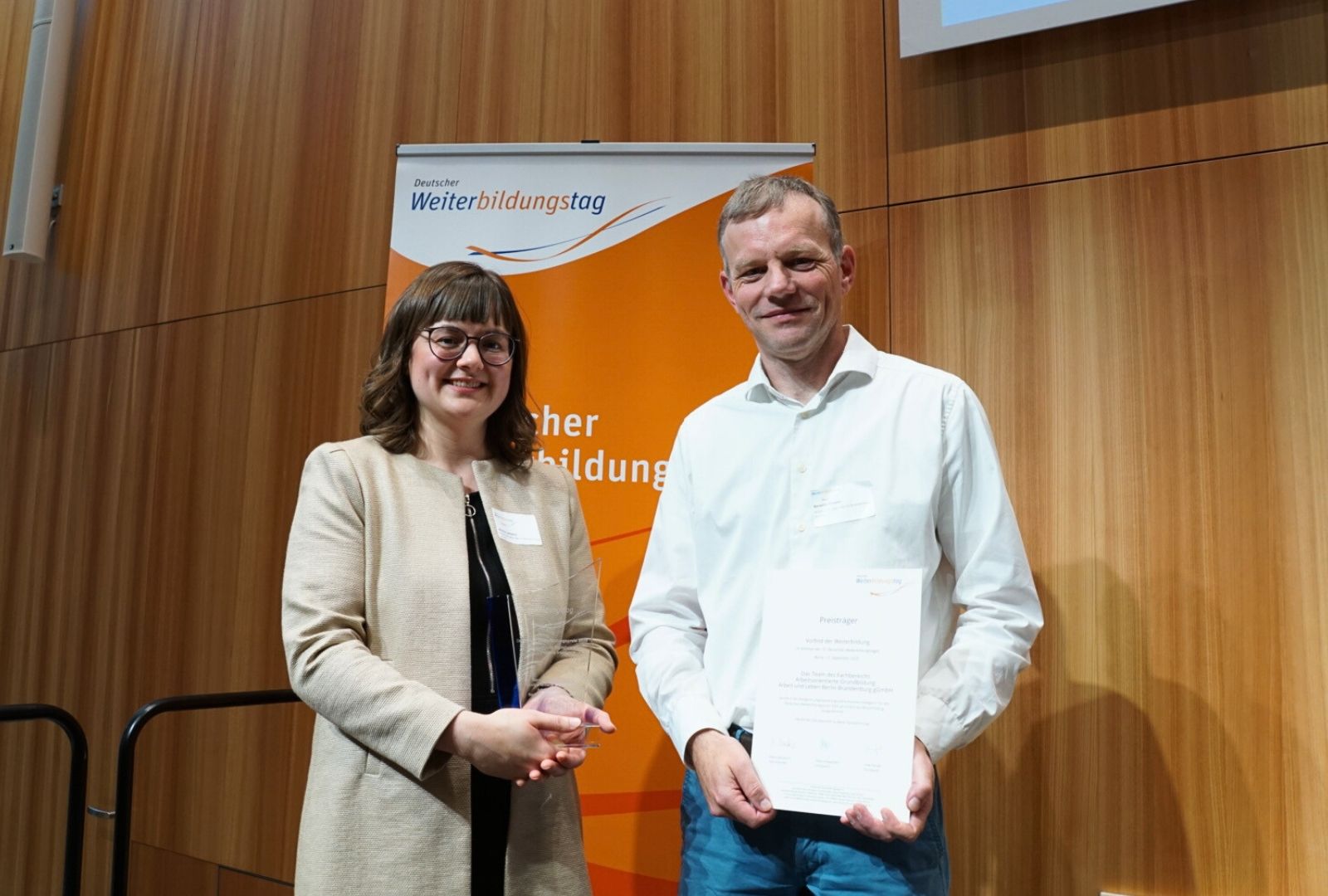 Ein Höhepunkt war zudem die Auszeichnung von Arbeit und Leben Berlin-Brandenburg. Das Team um Johanna Lambertz und Marie Quiter erhielt den Preis „Vorbild der Weiterbildung“ in der Kategorie Digitalisierung und KI für die Entwicklung der eVideo Medienwerkstatt. Dieses innovative Lerninstrument nutzt Künstliche Intelligenz, um Grundbildungsinhalte niedrigschwellig, mehrsprachig und interaktiv zugänglich zu machen.